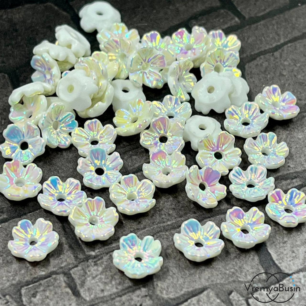 Цветочек из смолы, 8 мм цв. белый с АБ переливом (упак. 10 шт.)