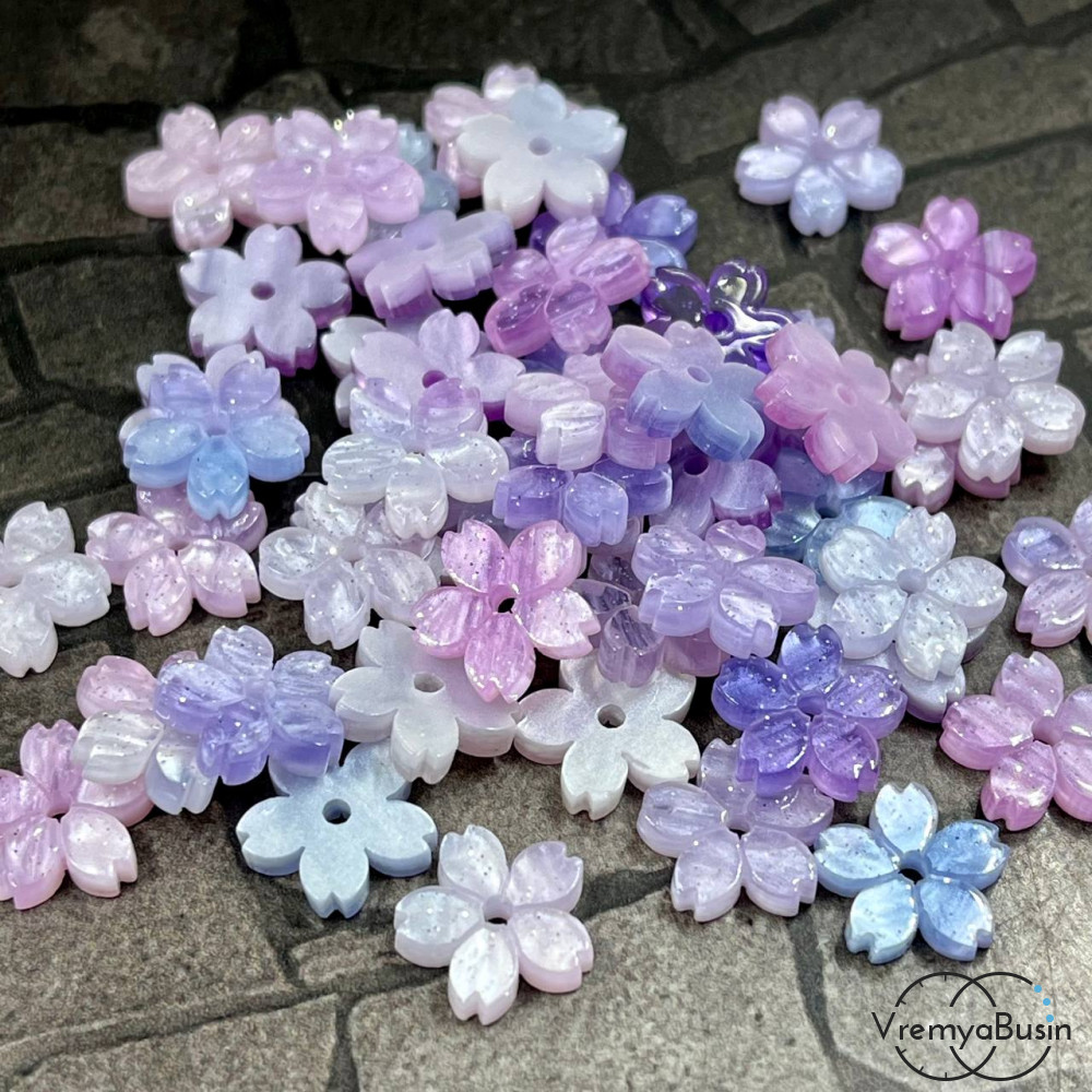 Цветочки акриловые перламутровые, 12 мм, цв. розово-голубой (упак. 10 шт.)