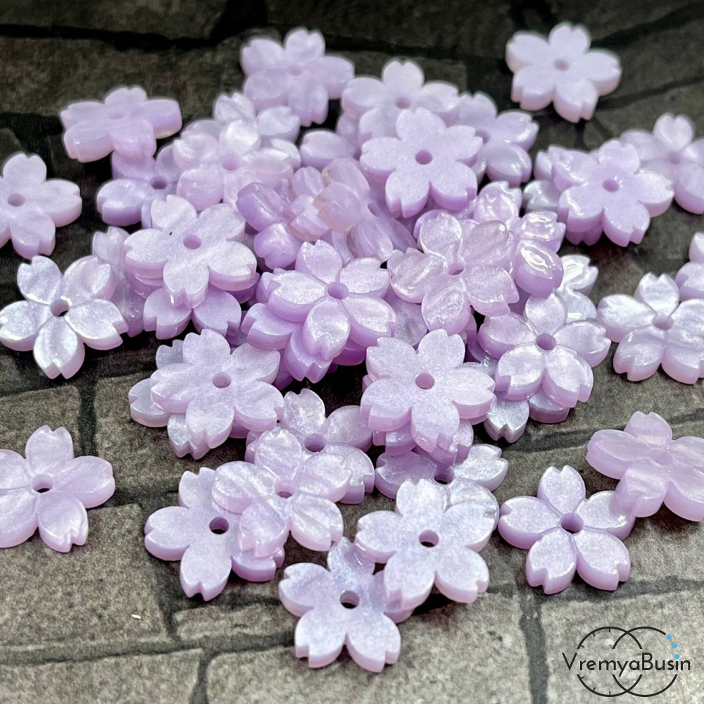 Цветочки акриловые перламутровые, 12 мм, цв. сиреневый (упак. 10 шт.)