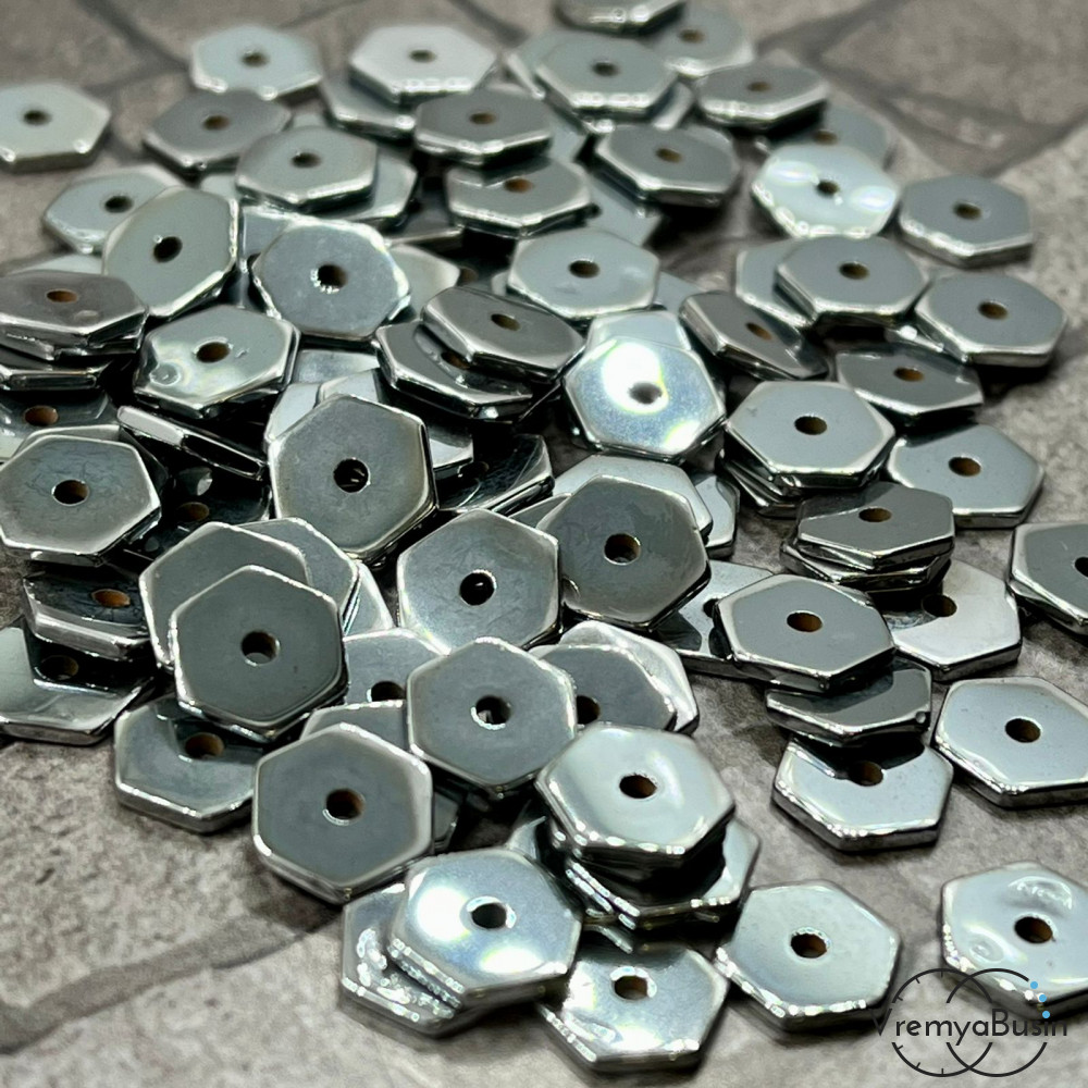 Гематит, чипс шестигранник 1х8 мм, цв. СЕРЕБРО (упак. 40 шт.)