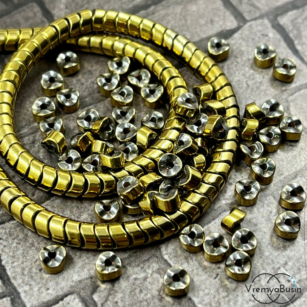 Гематит, диск изогнутый волной, 2х4 мм, цв. ЗОЛОТО (упак. 30 шт.)