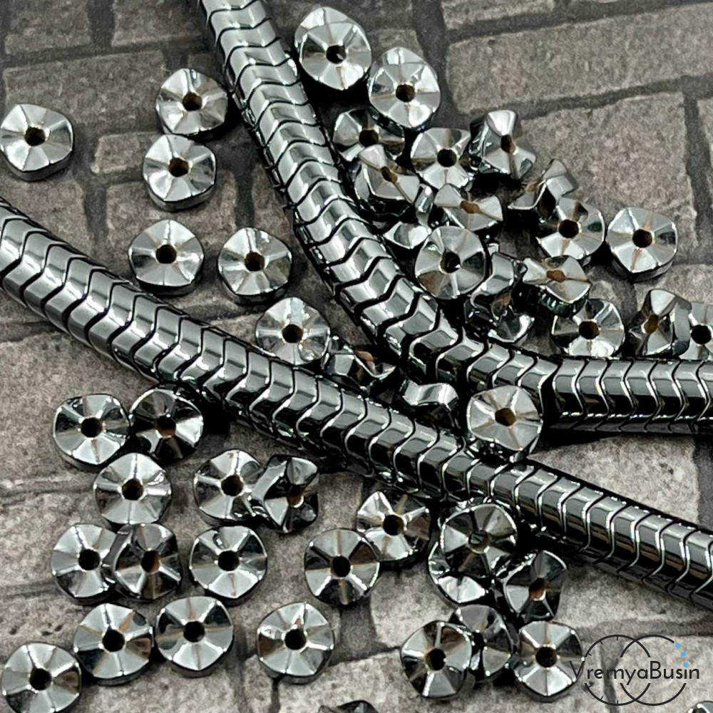 • Гематит, диск изогнутый волной, 3х6 мм, цв. ЧЕРНЫЙ (упак. 20  шт.)
