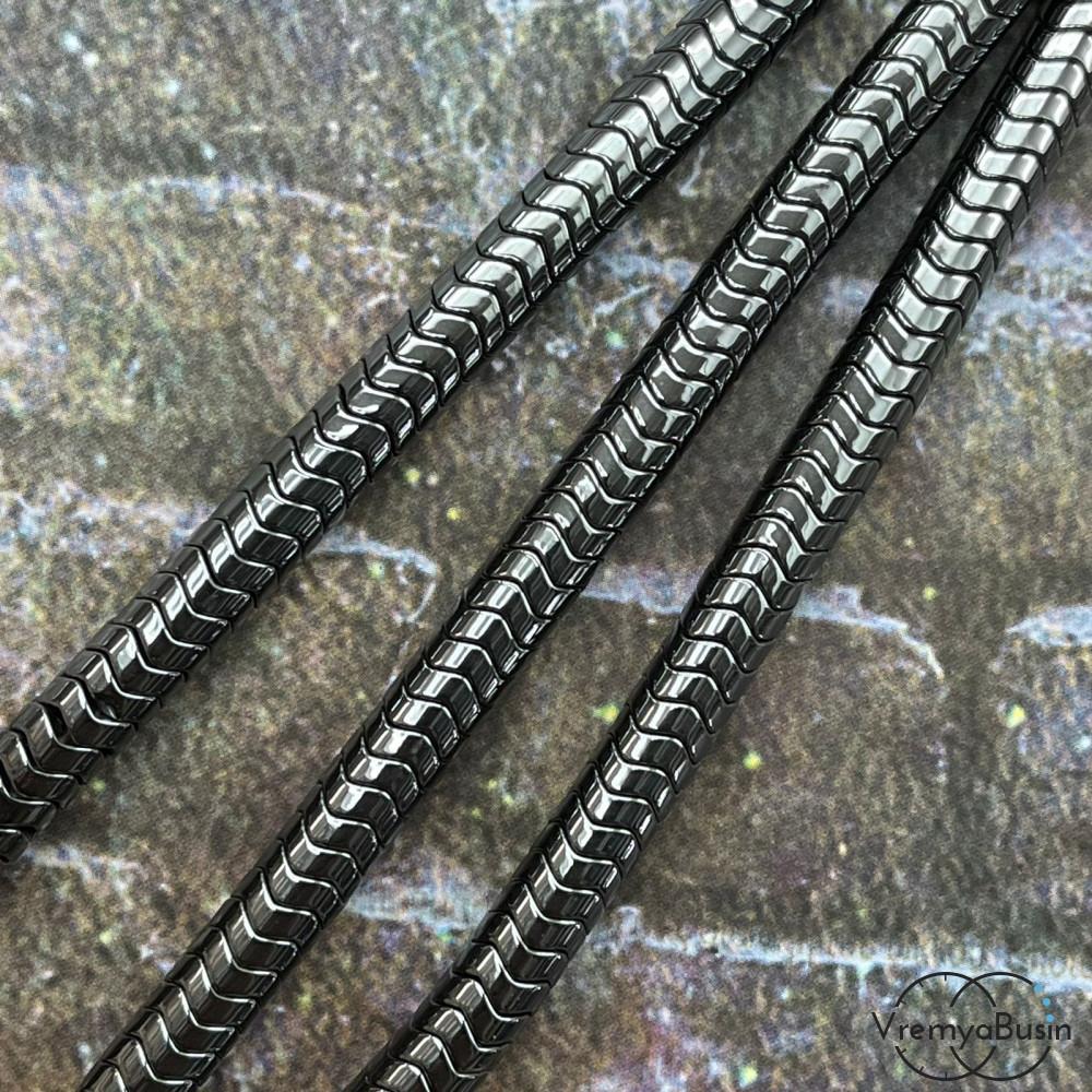Гематит, диск изогнутый волной, 3х6 мм, цв. ЧЕРНЫЙ (нить, ок. 130 шт.)