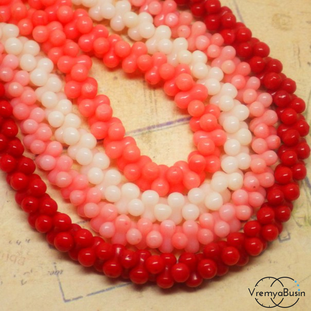 Коралл мелкие бусины гантели, цвет белый лососевый красный розовый