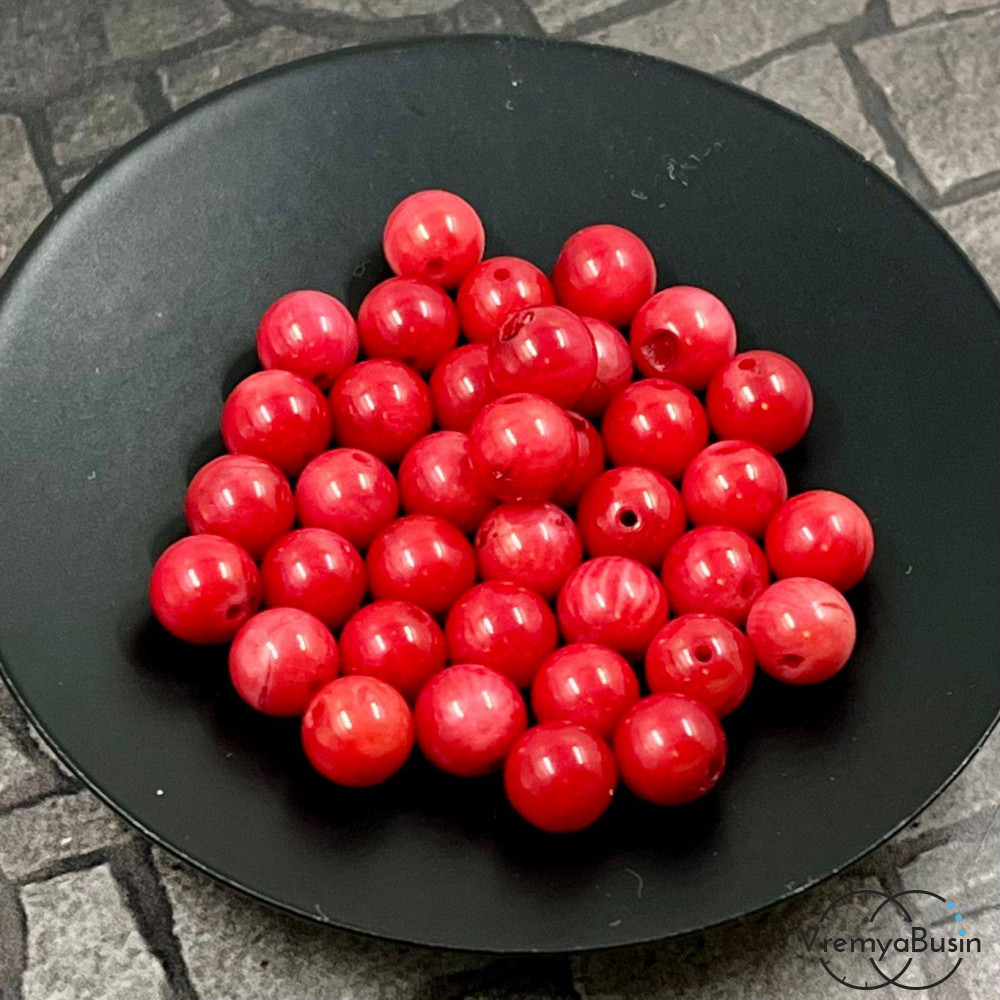 Коралл натур., шарик гладкий 7 мм, цв. КРАСНЫЙ (1 шт.)