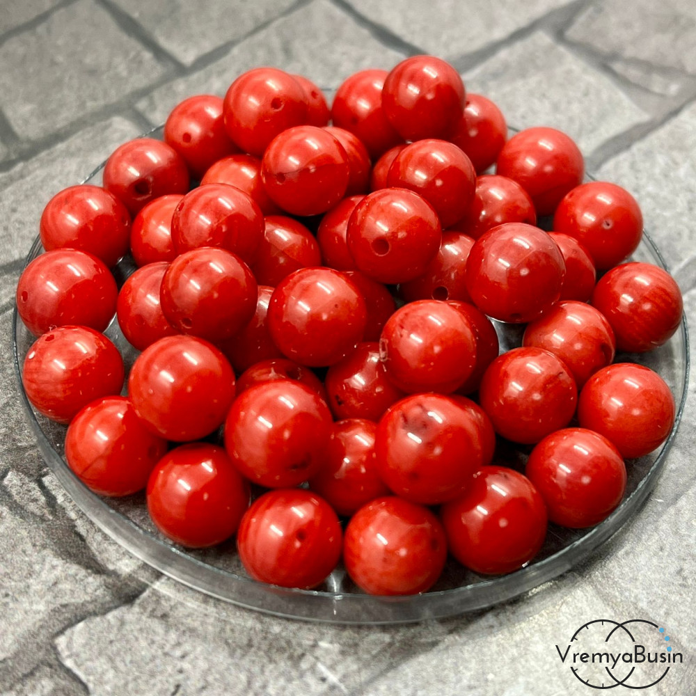 Коралл натуральный, бусина шарик гладкий 8 мм, цв. красный (1 шт.)