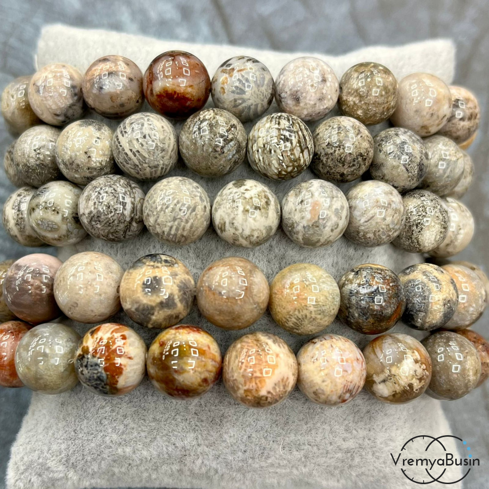 • Коралл натуральный окаменелый, бусина шарик гладкий 10 мм (1/2 нити, ок. 19 шт.)