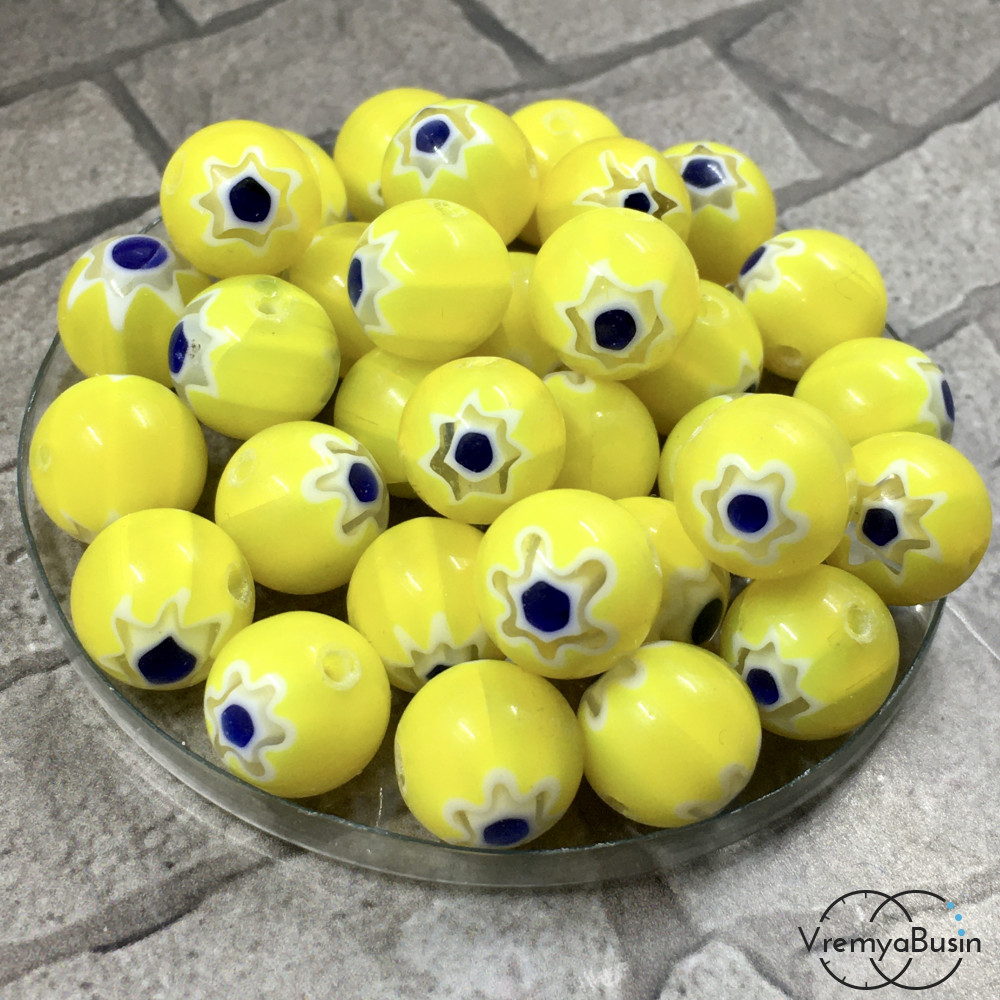 Бусины стеклянные гладкие шарики 10 мм, стекло миллефиори (1 шт.)