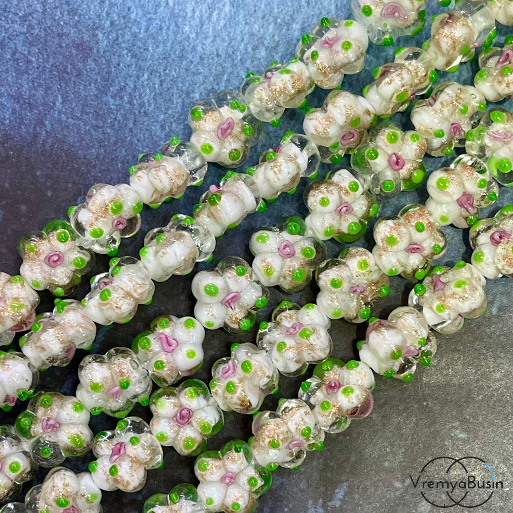 Бусины из стекла лэмпворк, цветочек 14х15х10 мм, цв. белый (1/2 нити, ок. 10 шт.)