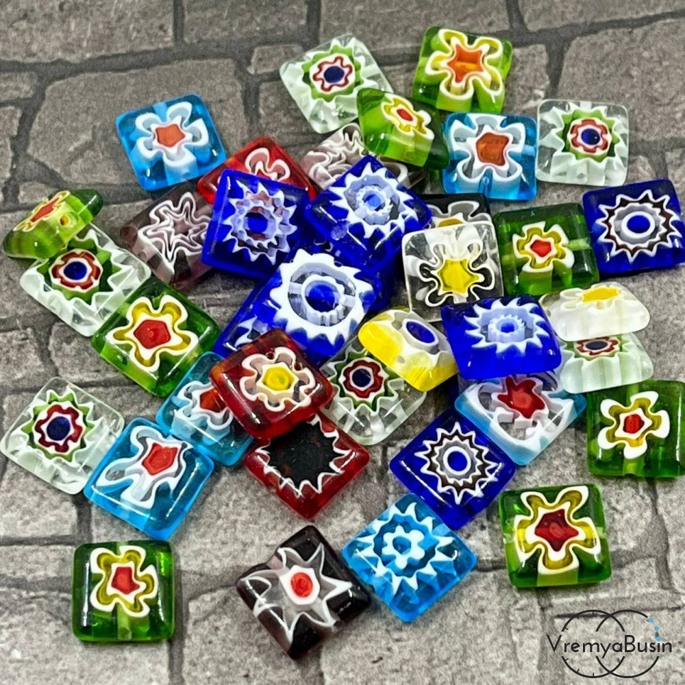 Бусины из стекла миллефиори, квадратик плоский 10 мм (1 шт.)