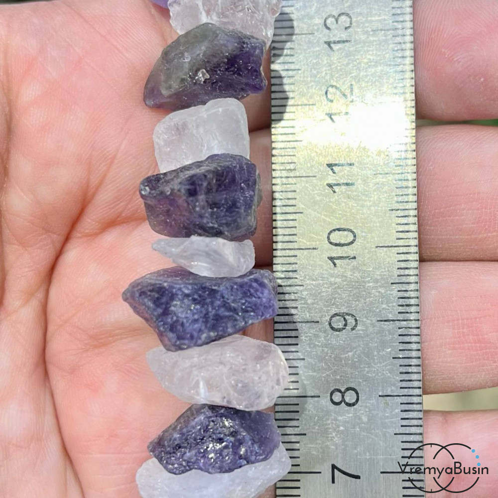 Аметист / Горный хрусталь, необработанные сколы кусочки, разм. ок. 6х15 мм (1/2 нити, ок. 20 шт.)