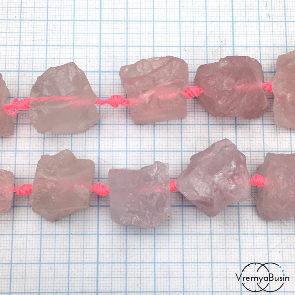 Розовый кварц, крупные кусочки необработанного камня (1/2 нити, ок. 7 шт.)