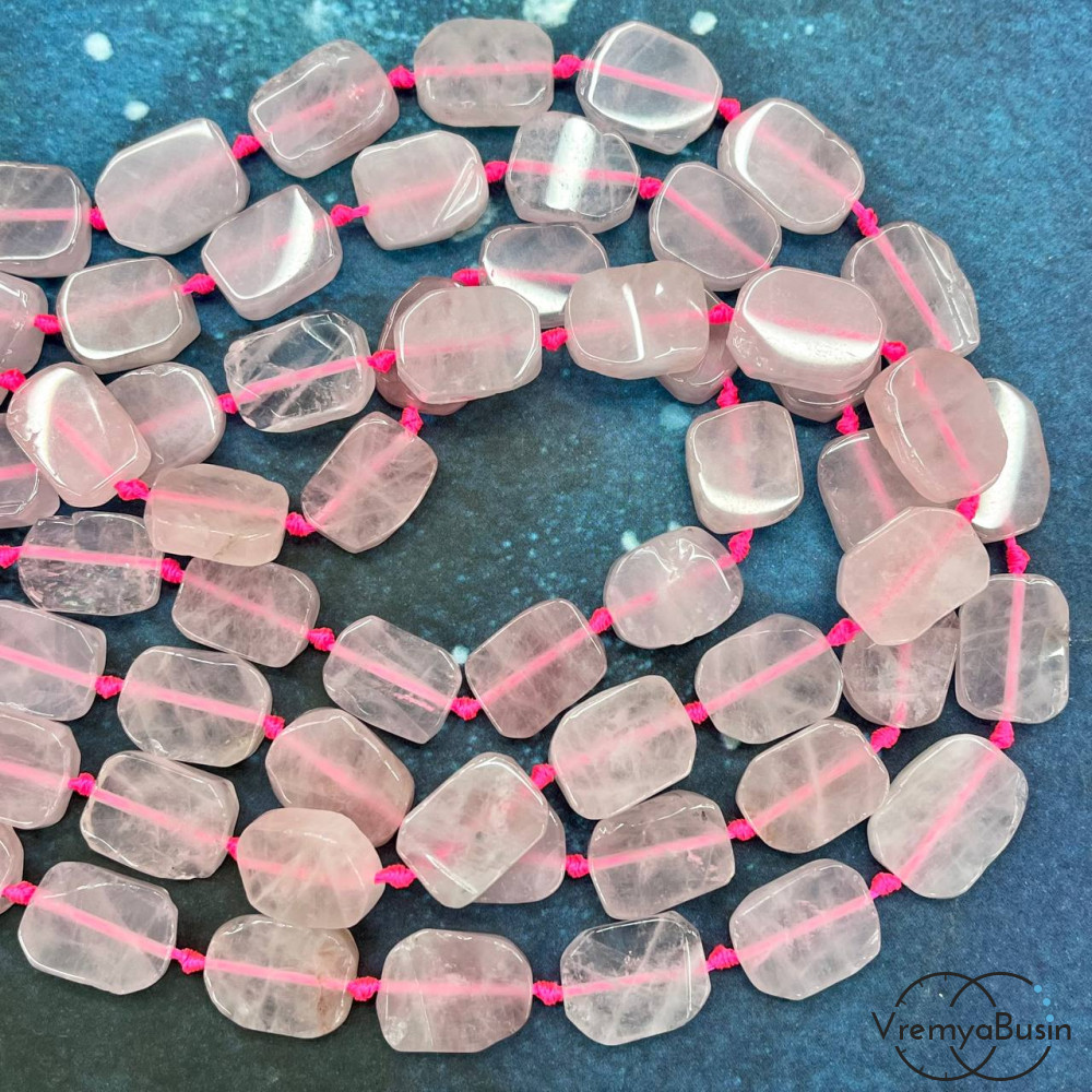 • Розовый кварц. Овальные плоские бусины, ок. 12х16 мм (нить, ок. 22  шт.)