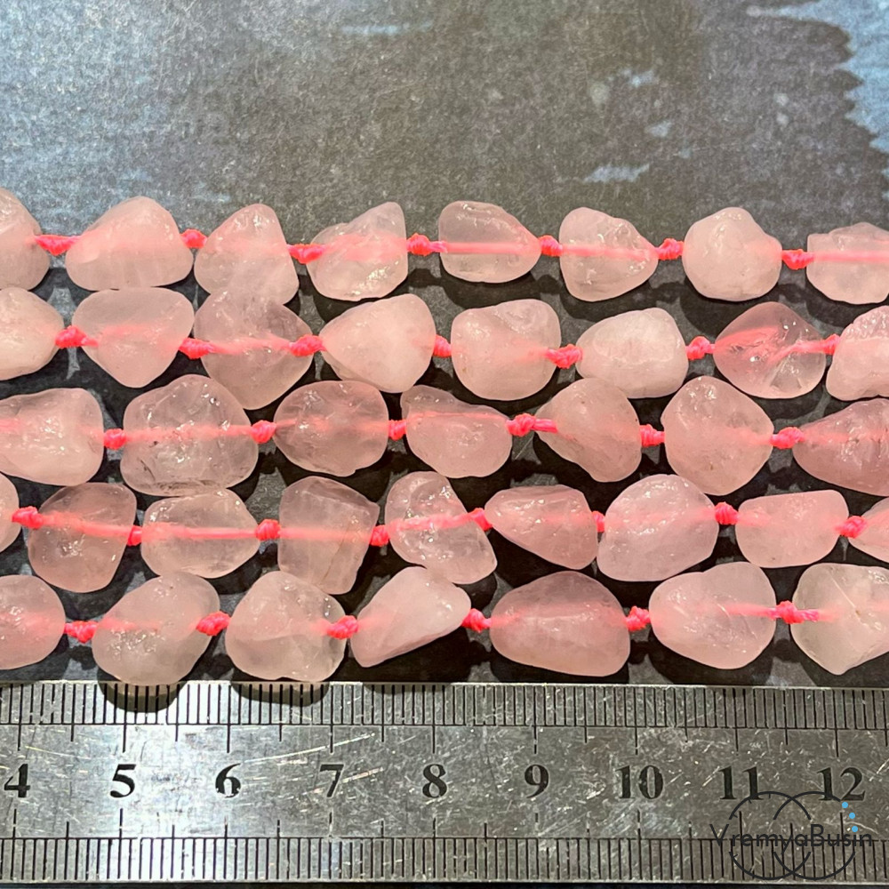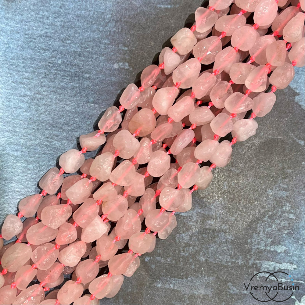 Розовый кварц, мелкие кусочки необработанного камня (нить, ок. 35 шт.)