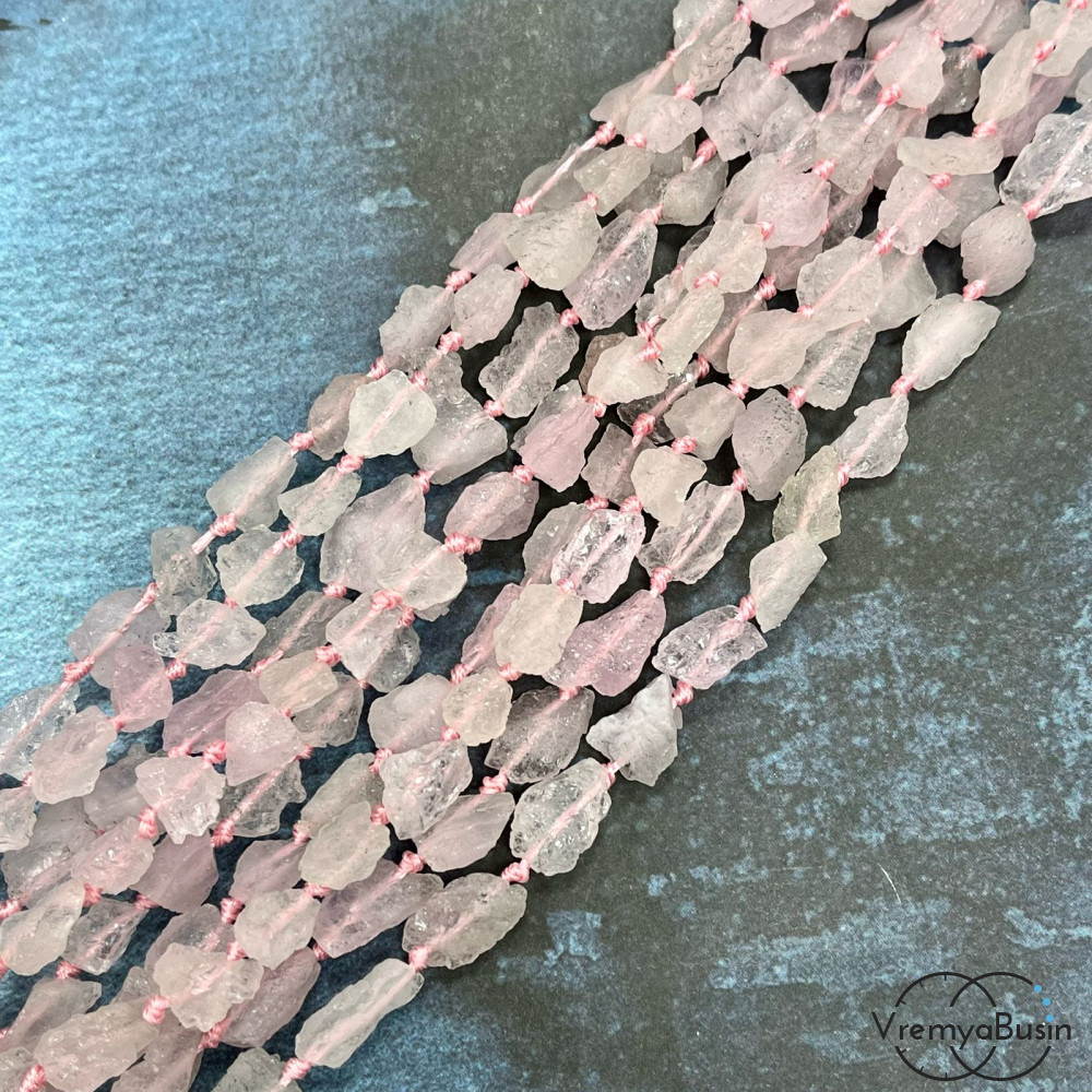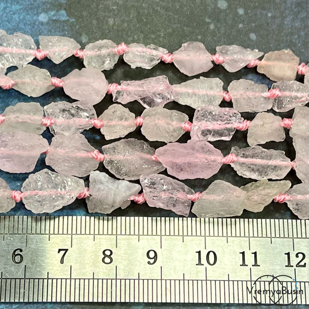 Розовый кварц, мелкие кусочки необработанного камня (нить, ок. 36 шт.)