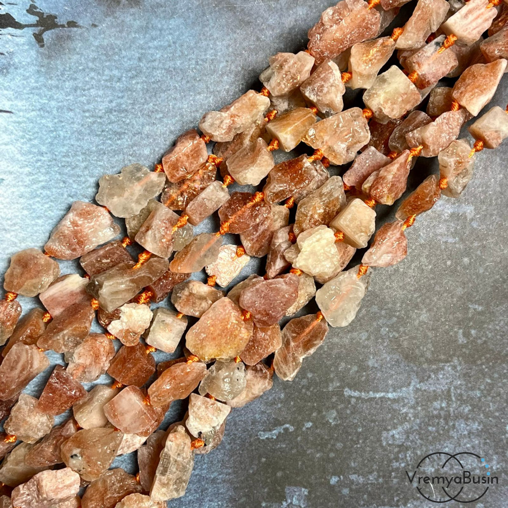 Солнечный камень, мелкие кусочки необработанного камня (нить, ок. 28 шт.)