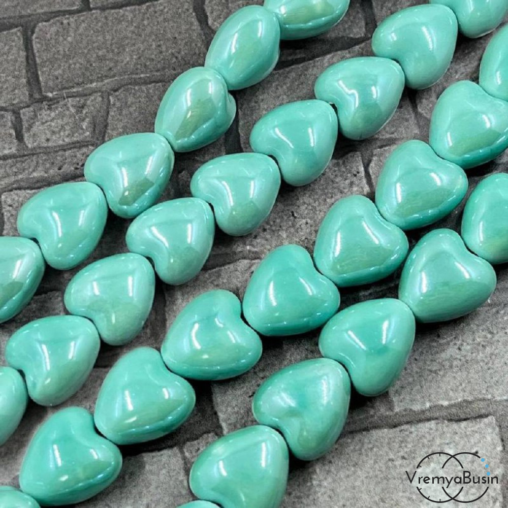 • Бусины керамические "Сердце", 12 мм (1/2 нити, ок. 12 шт.)