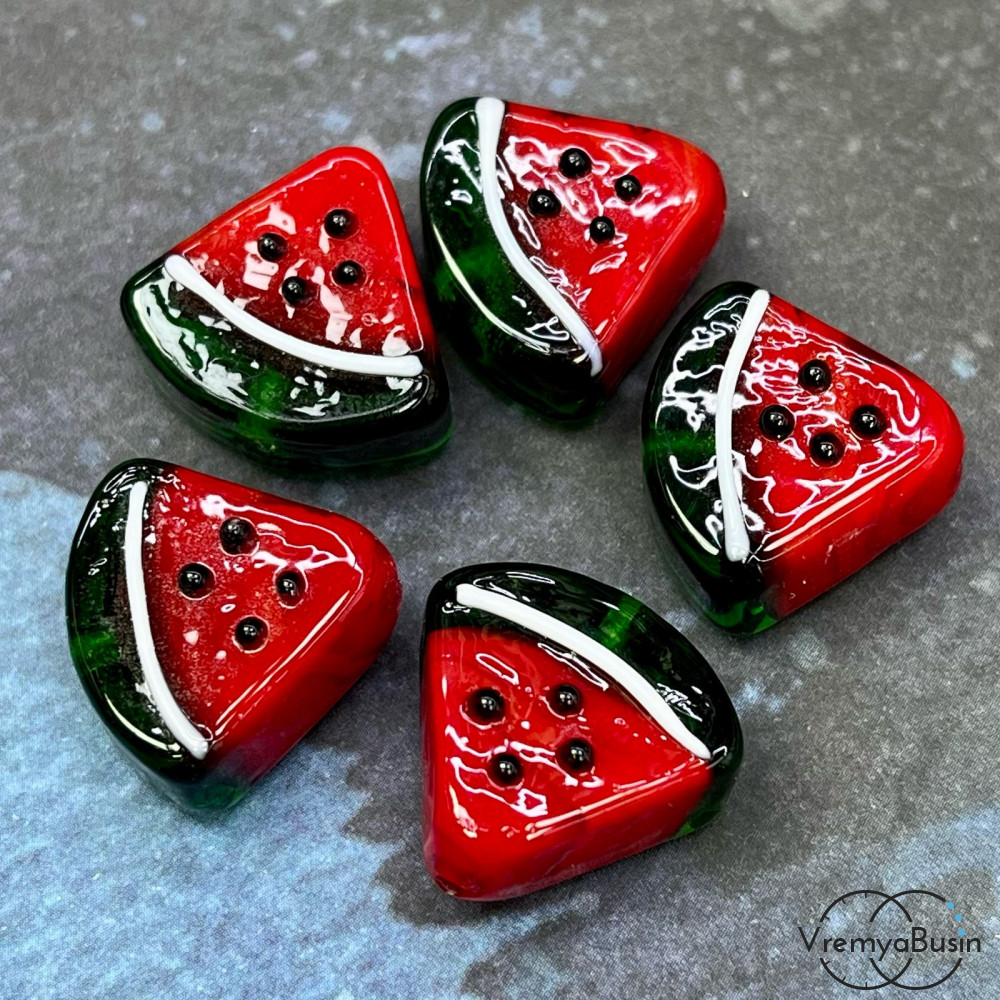 Бусины из стекла лэмпворк "Арбуз", 20х20х10 мм (1 шт.)