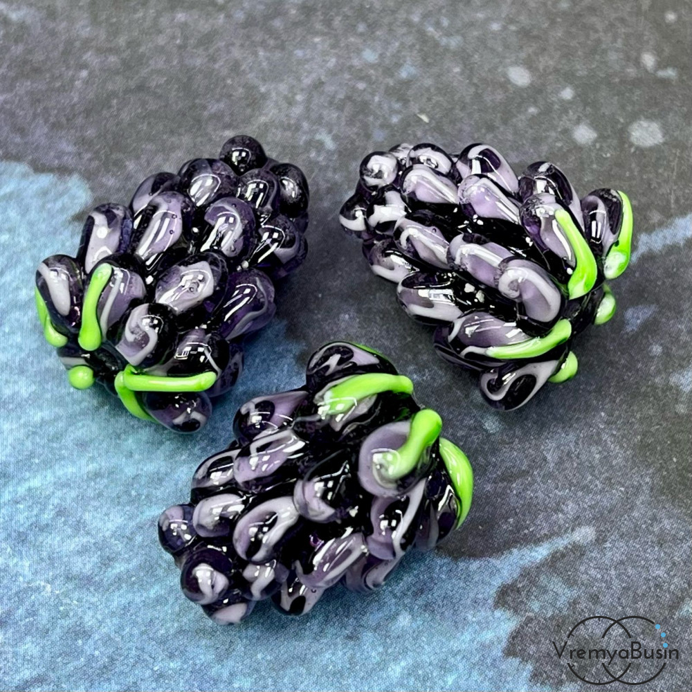 Бусины из стекла лэмпворк "Ежевика", ок. 20х15 мм ок. (1 шт.)
