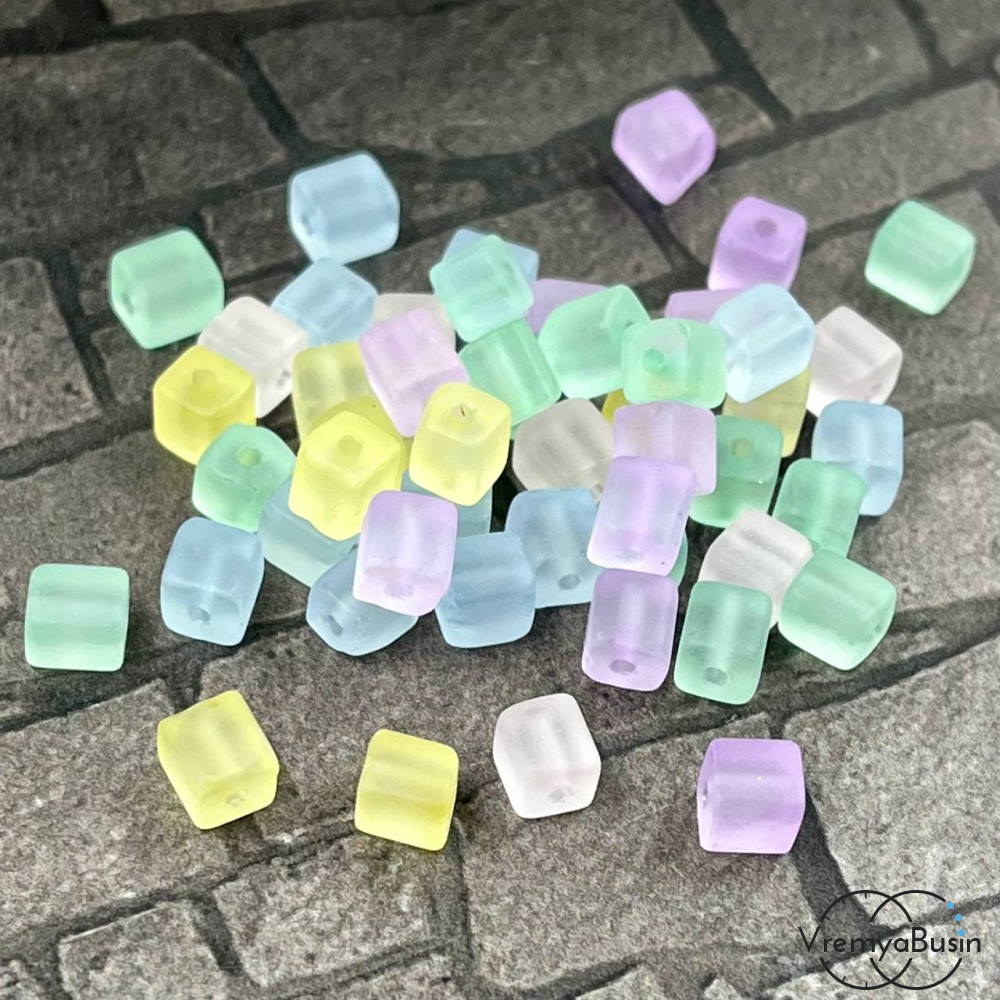 Бусины кубики из матового стекла, 5х5 мм, цв. пастельный микс (упак. 10 шт.)
