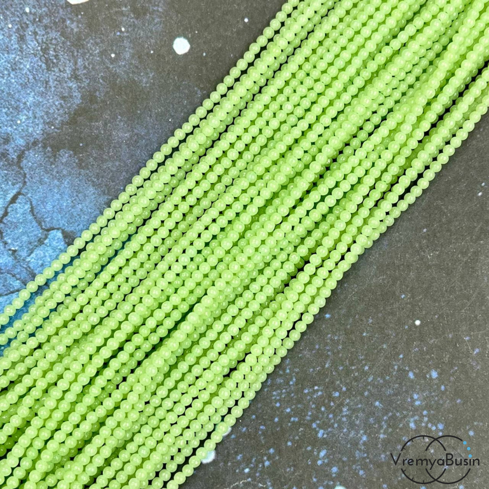 Бусины шарики из стекла, светятся в темноте, диам. ок. 2.5 мм (нить, ок. 40 см.)