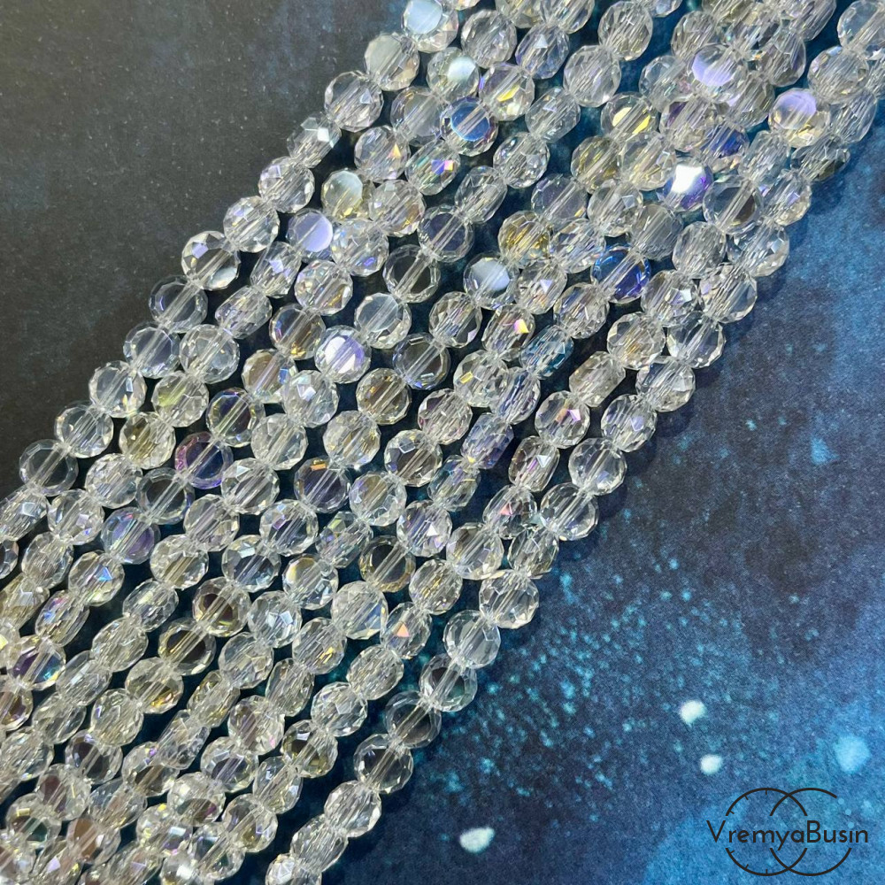 Бусины таблетки из граненого стекла, 4х6 мм, цв. перламутровый (1/2 нити, ок. 45 шт.)