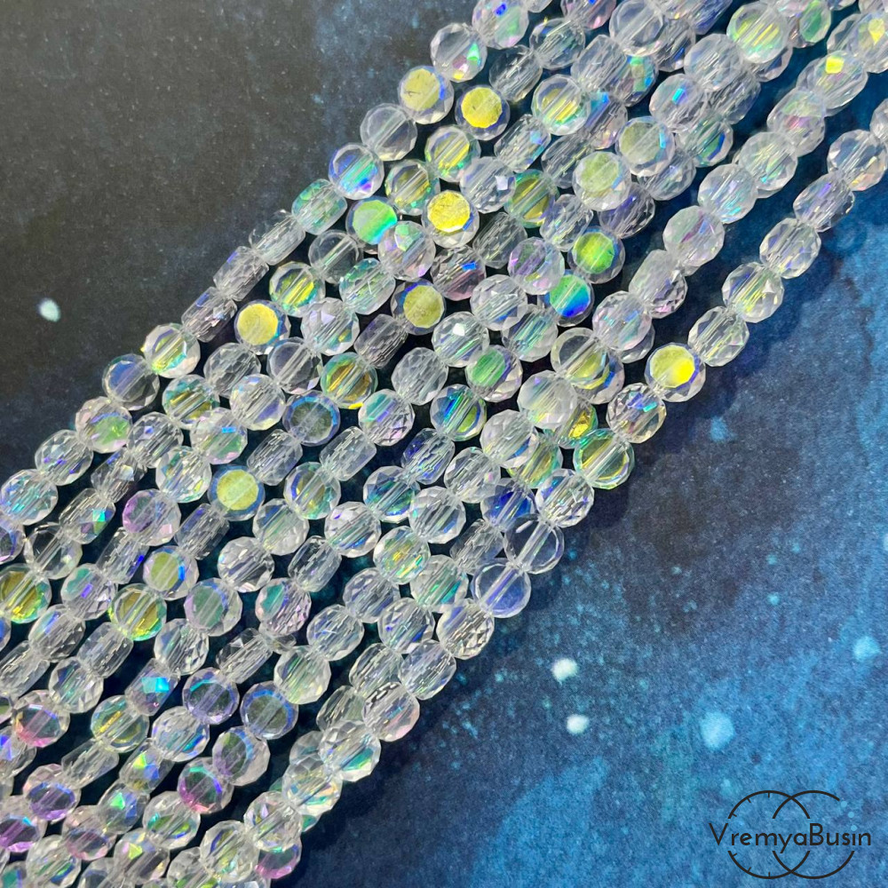 Бусины таблетки из граненого стекла, 4х6 мм, цв. кристалл АБ (1/2 нити, ок. 45 шт.)