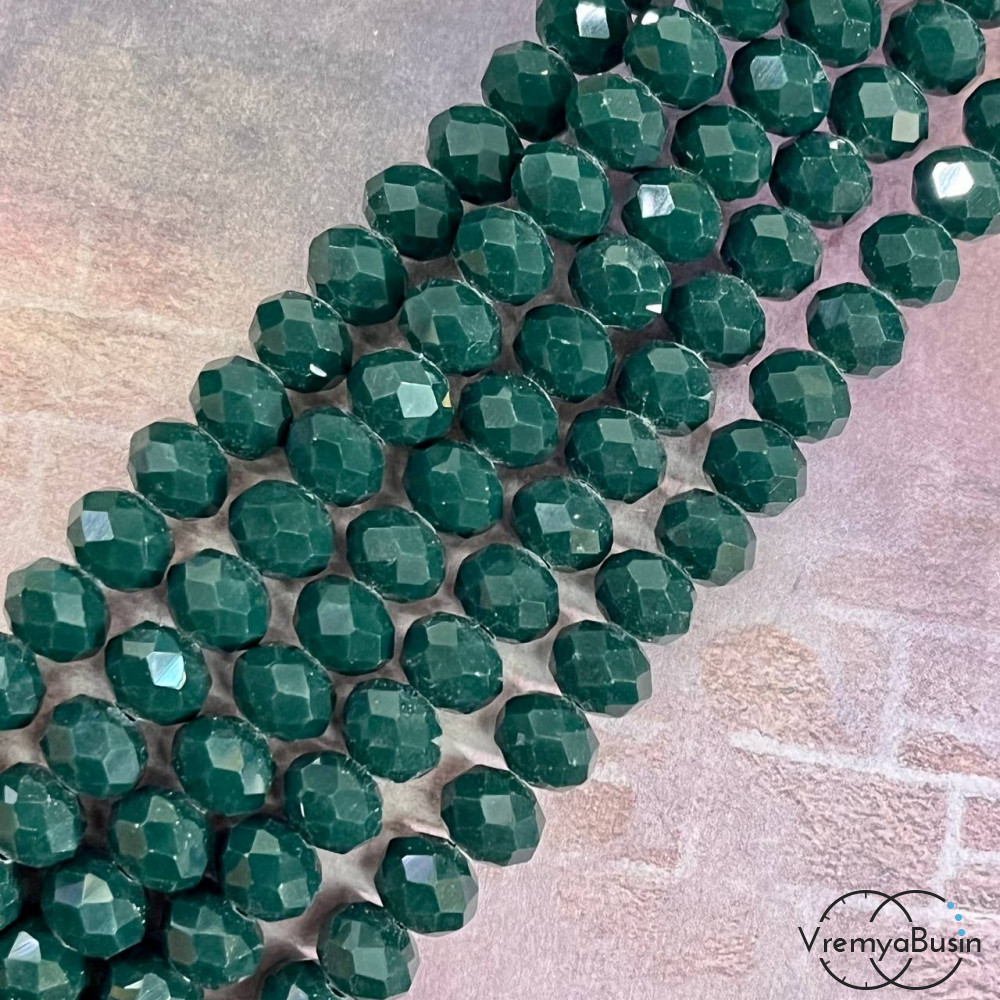 Бусины-рондели из граненого стекла, цв. изумрудный матовый , размер 8 мм (нить, ок. 65 шт.)