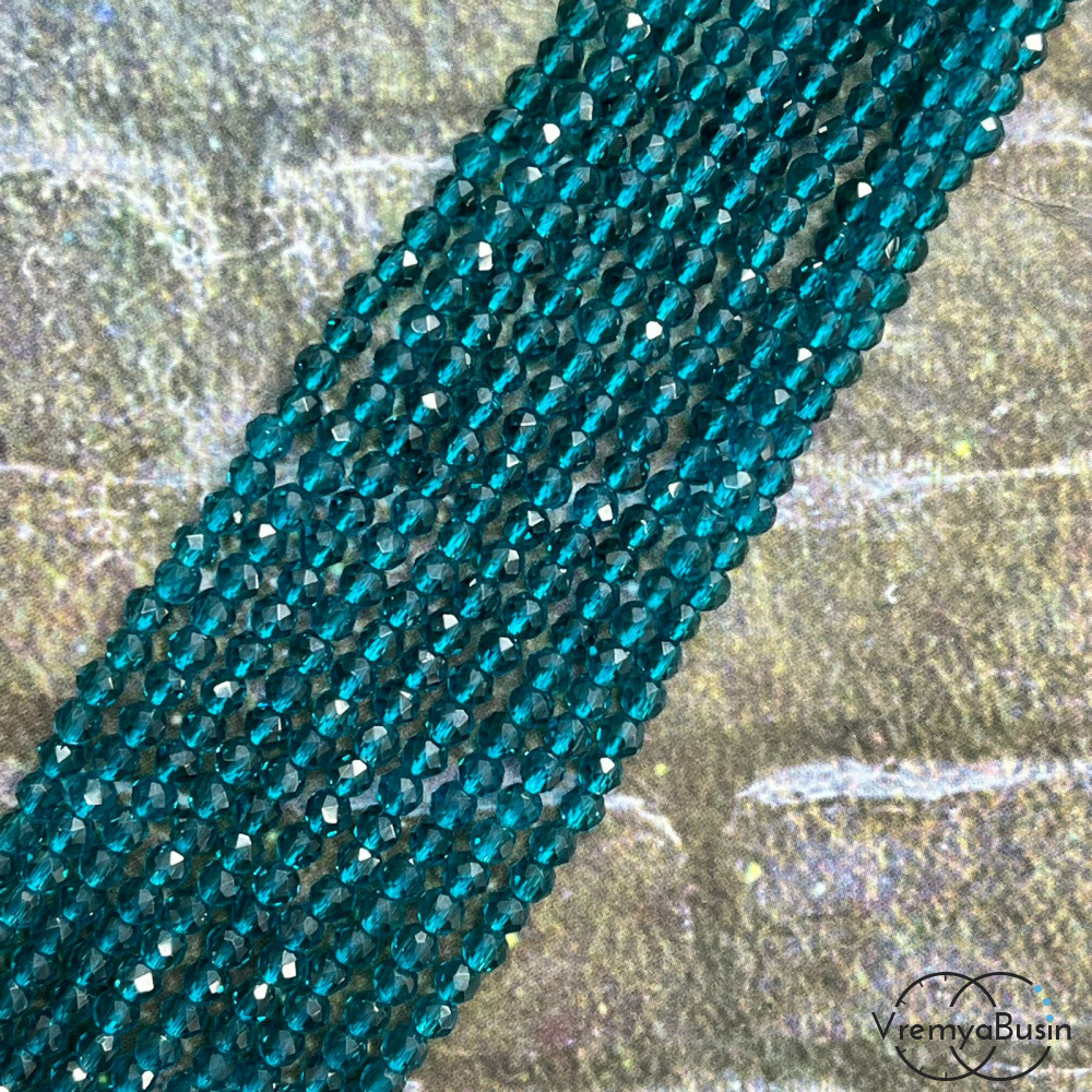 Бусины шарики из стекла с ювелирной огранкой, 3 мм (нить, ок. 130 шт.)