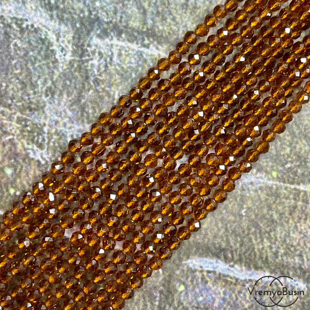 Бусины шарики из стекла с ювелирной огранкой, 3 мм (нить, ок. 130 шт.)