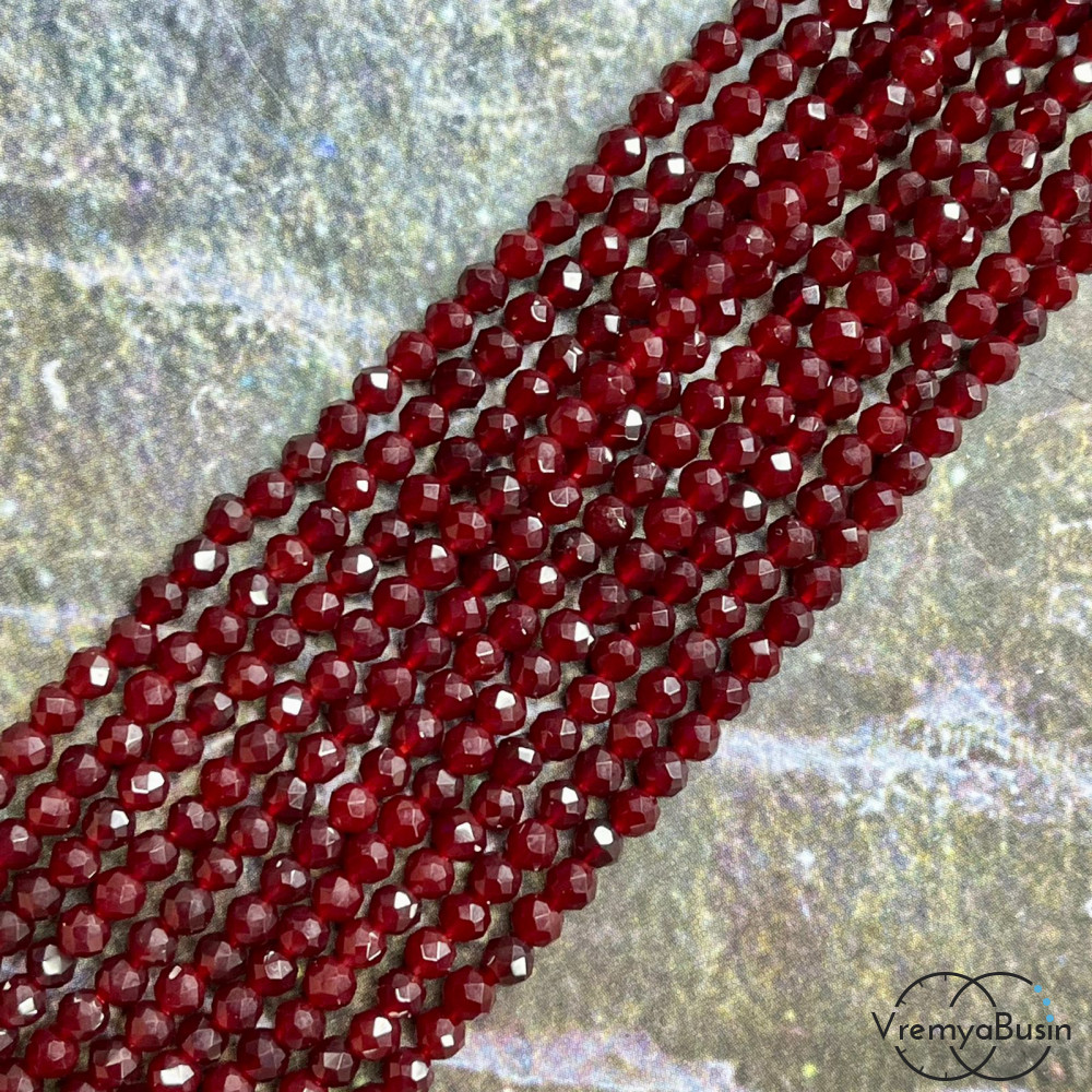Бусины шарики из стекла с ювелирной огранкой, 3 мм (нить, ок. 130 шт.)