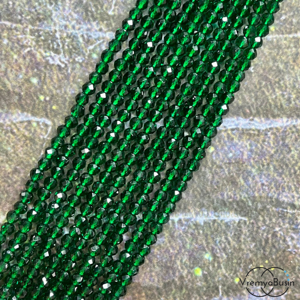 Бусины шарики из стекла с ювелирной огранкой, 3 мм (нить, ок. 130 шт.)