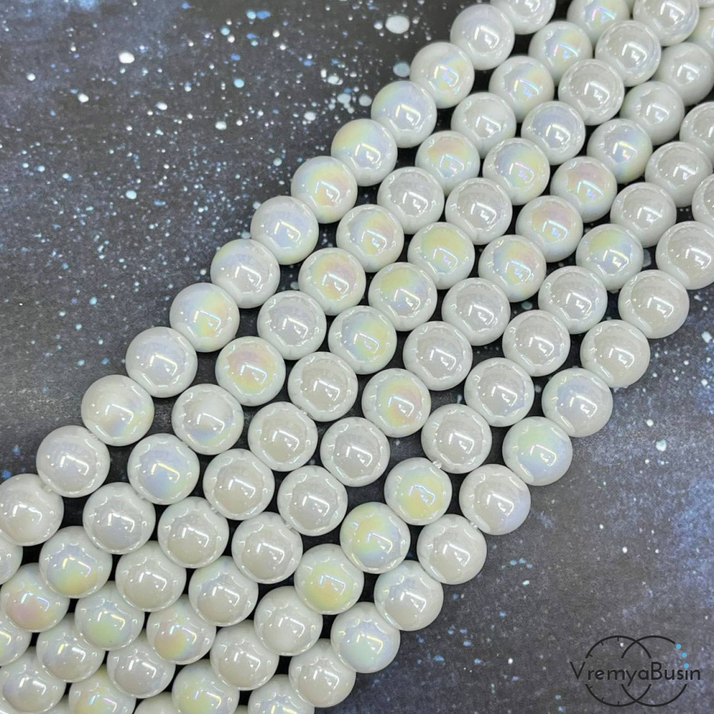 Бусины из стекла, шарик гладкий 8 мм с переливом (нить, ок. 48 шт.)