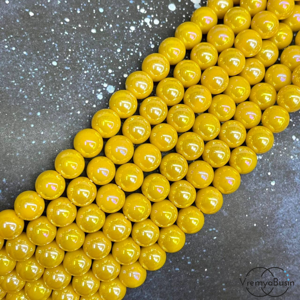 • Бусины из стекла, шарик гладкий 8 мм с переливом (нить, ок. 48 шт.)