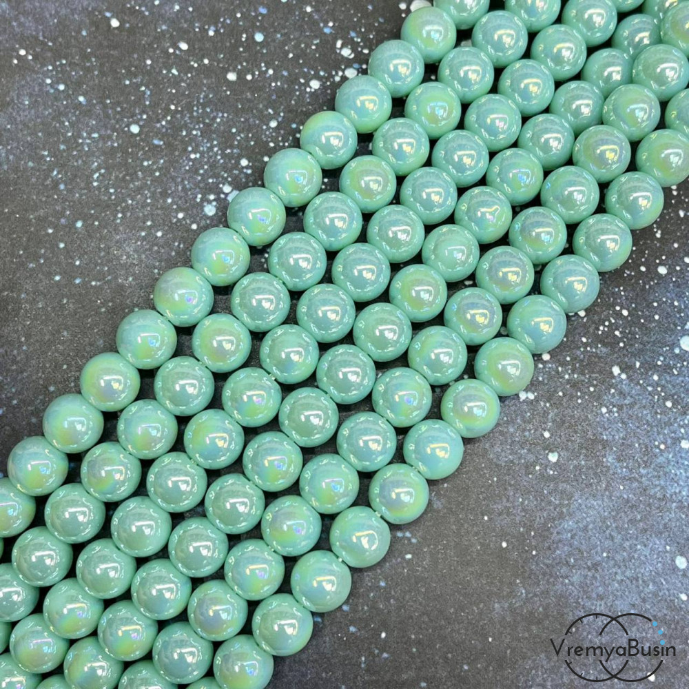 Бусины из стекла, шарик гладкий 8 мм с переливом (нить, ок. 48 шт.)