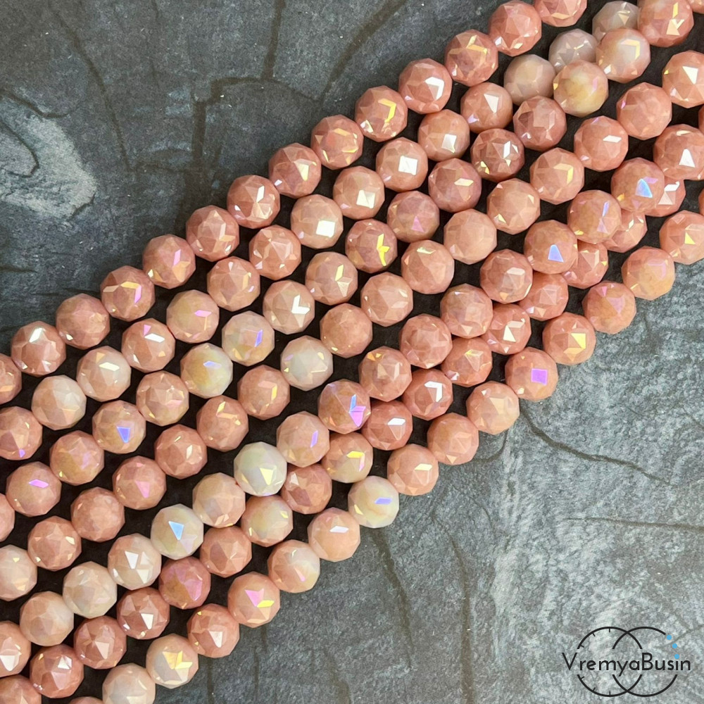 Бусины шарики из стекла с треугольной огранкой, 8 мм (1/2 нити, ок. 24 шт.)