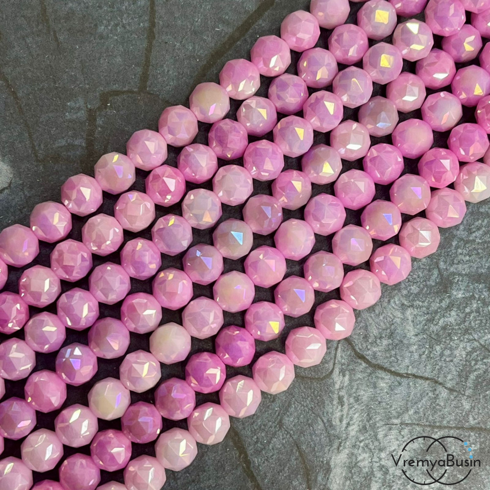 Бусины шарики из стекла с треугольной огранкой, 8 мм (1/2 нити, ок. 24 шт.)