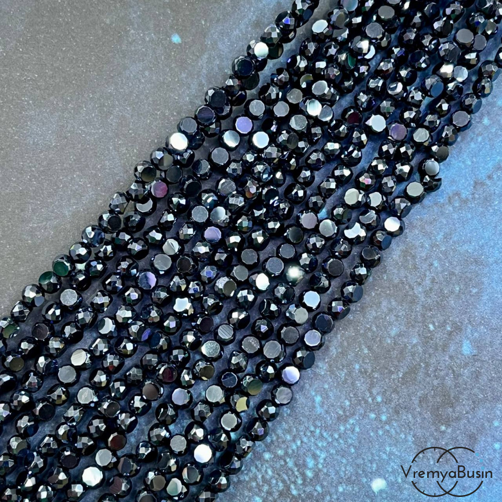 • Бусины таблетки из граненого стекла, 3х4 мм, цв. черный (1/2 нити, ок. 85 шт.)