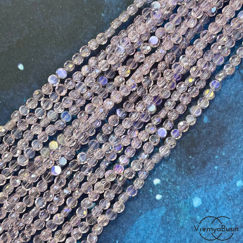 • Бусины таблетки из граненого стекла, 3х4 мм, цв. розовый (1/2 нити, ок. 85 шт.)