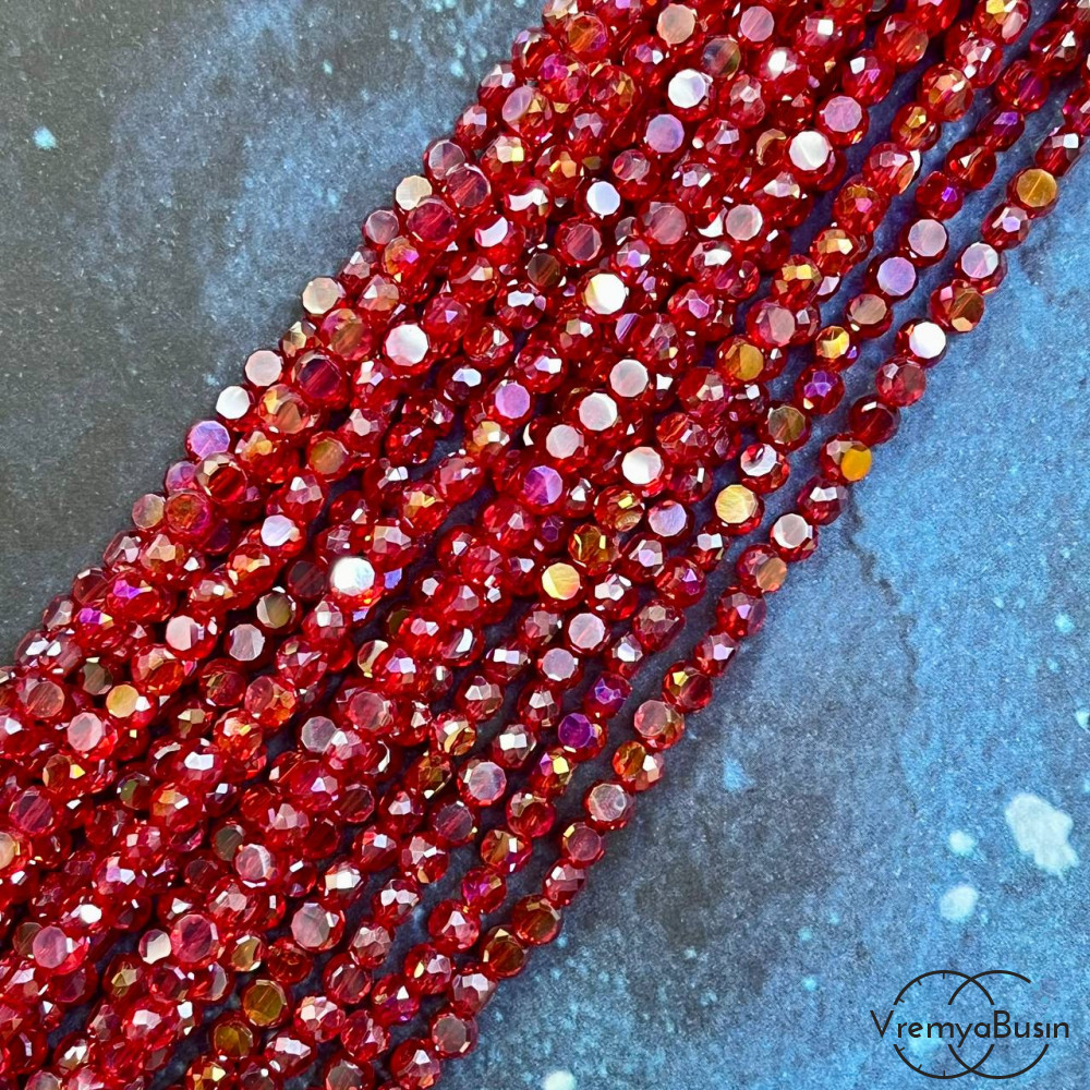 Бусины таблетки из граненого стекла, 3х4 мм, цв. красный (1/2 нити, ок. 85 шт.)