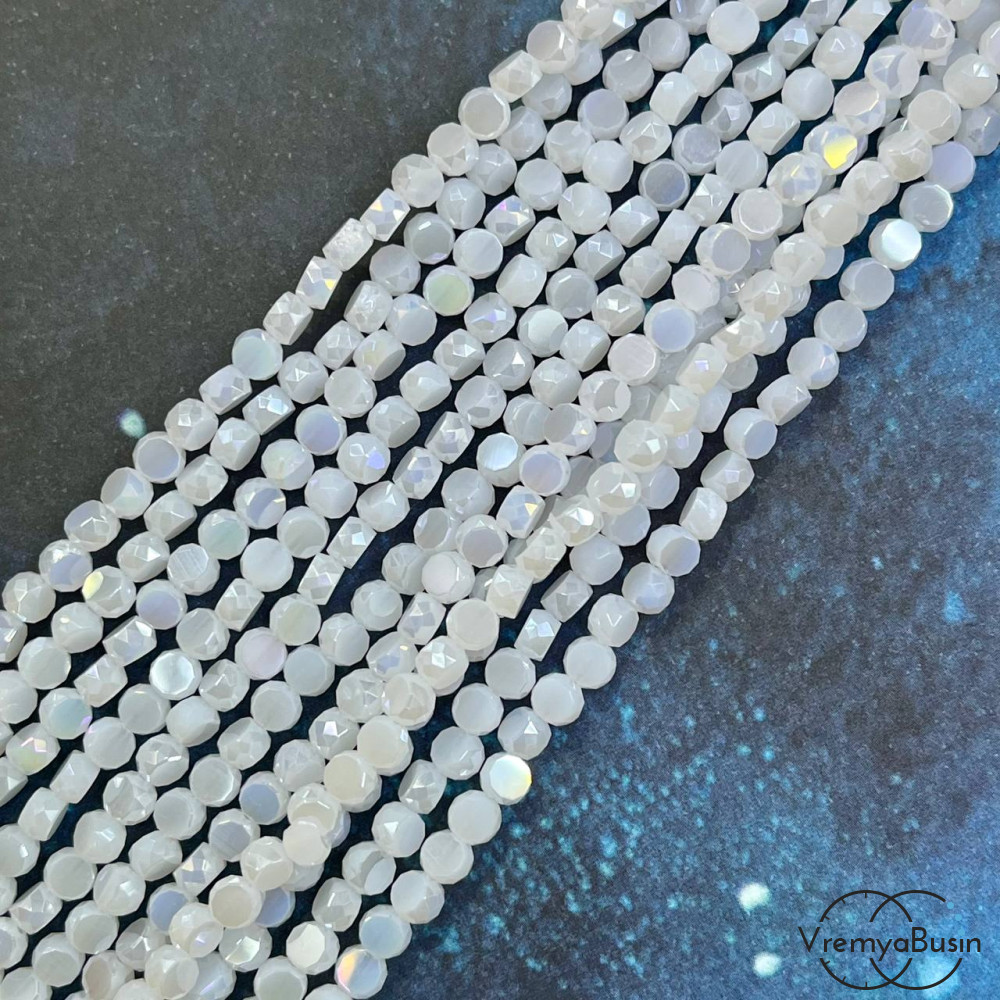 • Бусины таблетки из граненого стекла, 3х4 мм, цв. белый матовый (1/2 нити, ок. 85 шт.)