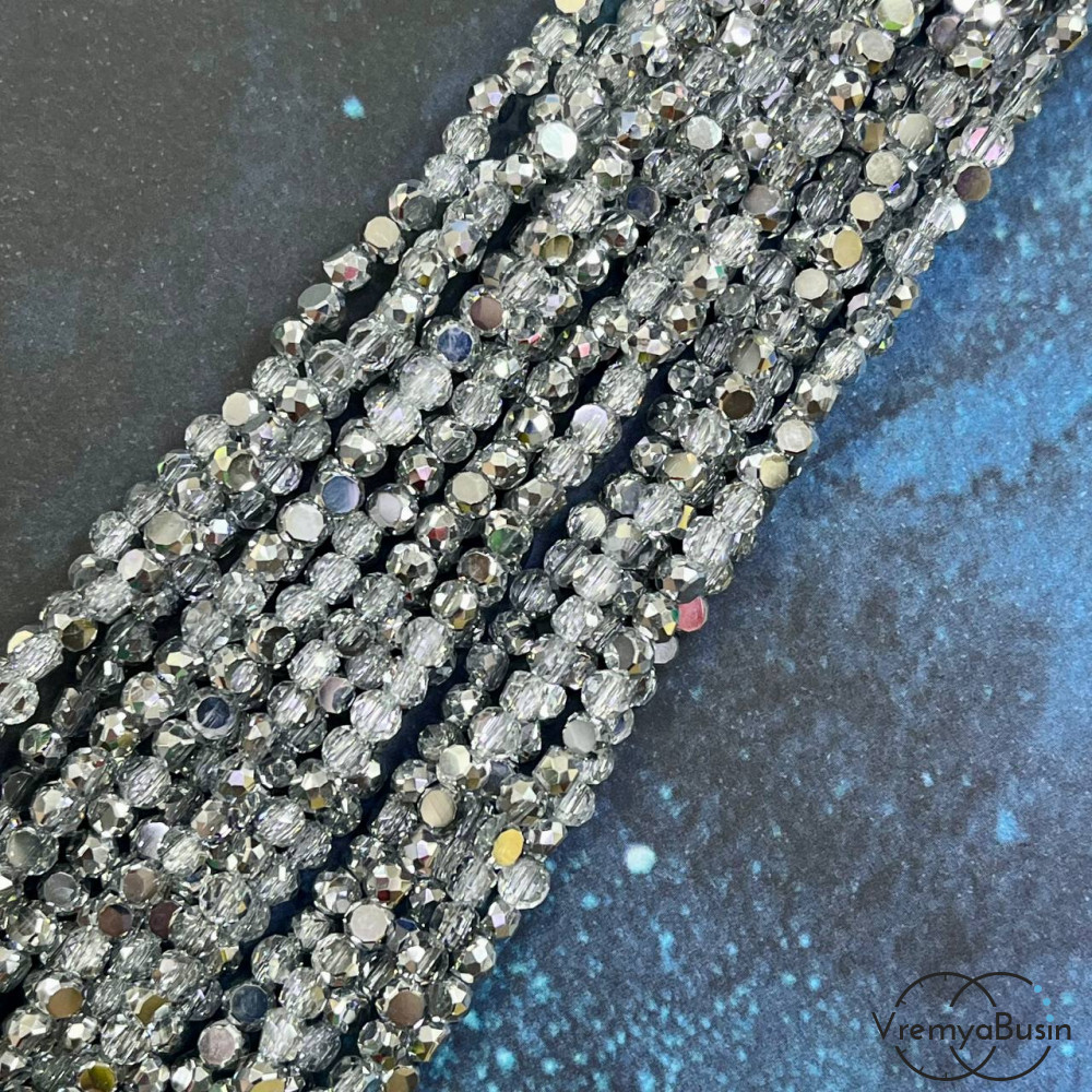 Бусины таблетки из граненого стекла, 3х4 мм, цв. серо-серебряный (1/2 нити, ок. 85 шт.)