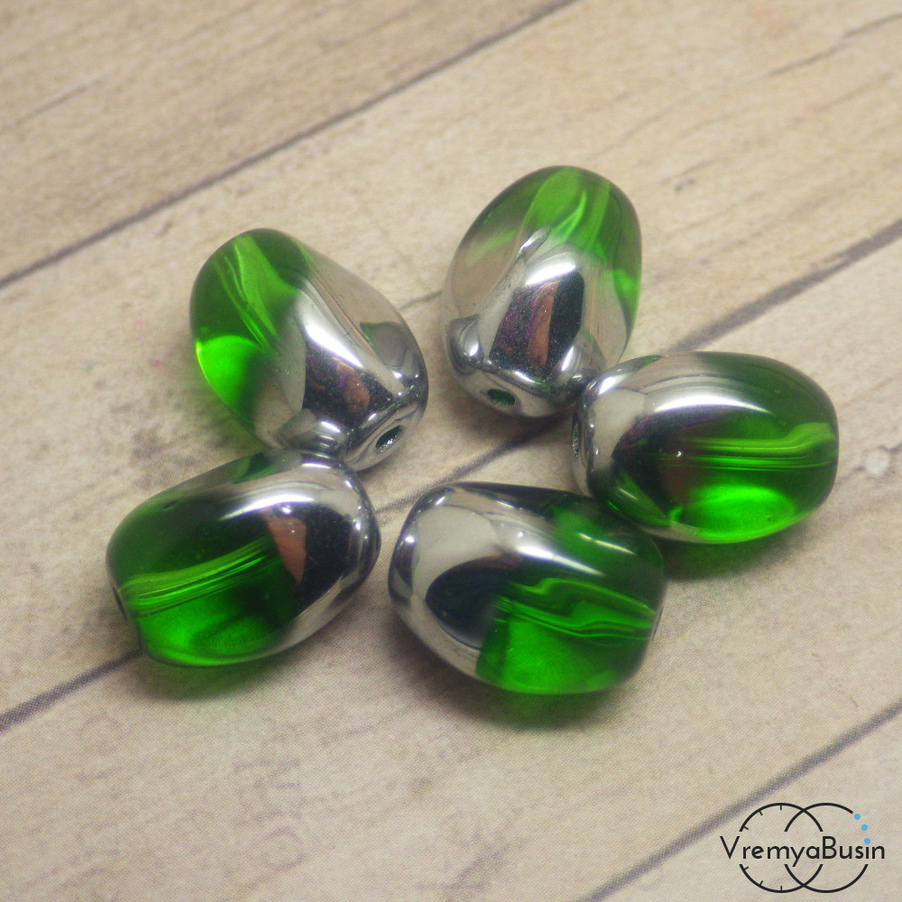 Бусины из стекла с напылением. Фриформ 10х13 мм.