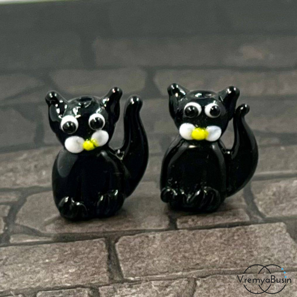 Бусина из стекла лэмпворк "Котик", 20х15х8 мм (1 шт.)