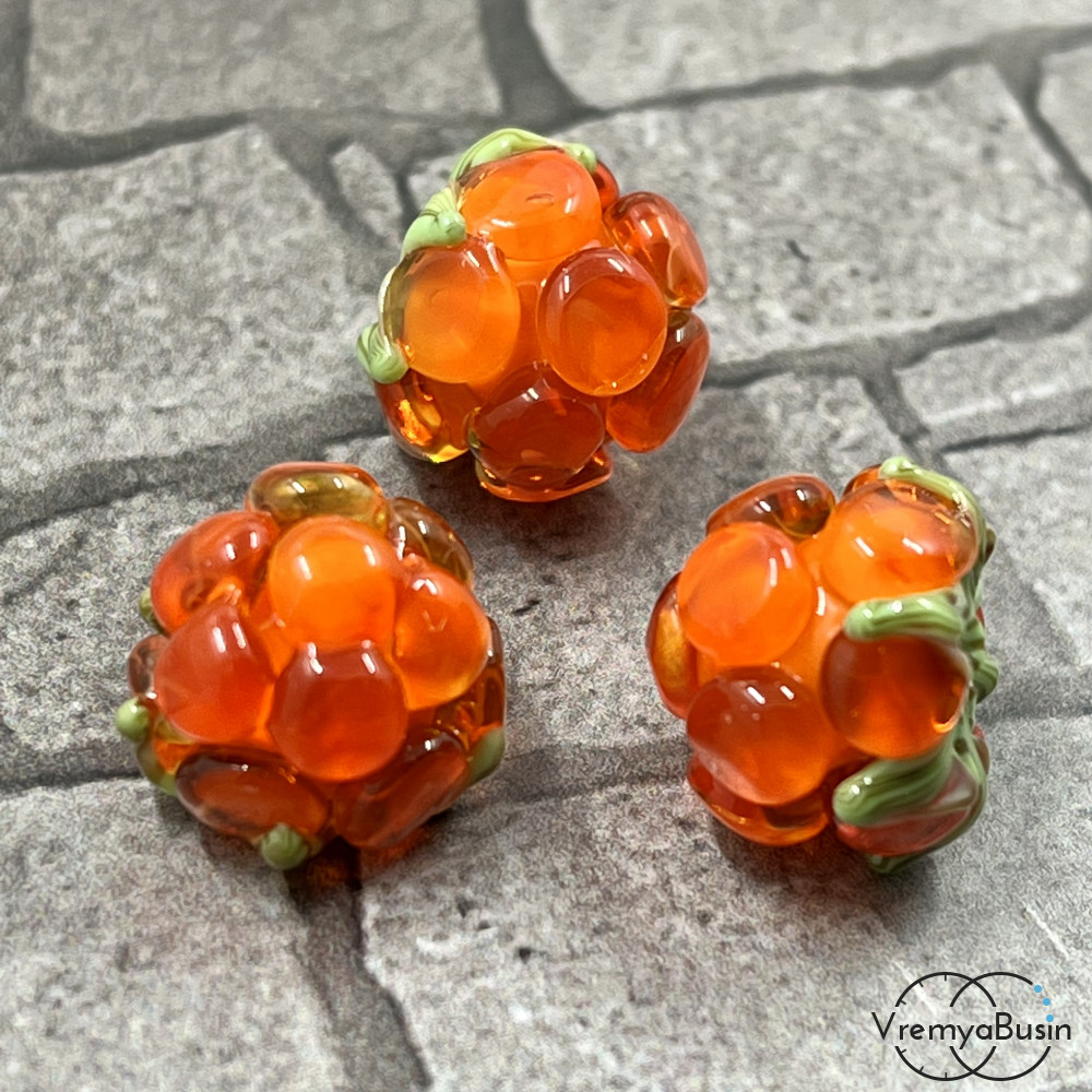 Бусина ручной работы "Морошка", ок. 11х12 мм, лэмпворк из стекла (1 шт.)