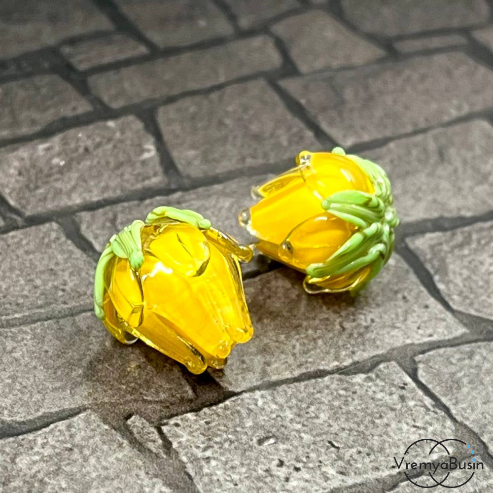 • Бусина ручной работы "Бутон", 12х15 мм, лэмпворк из стекла (1 шт.)