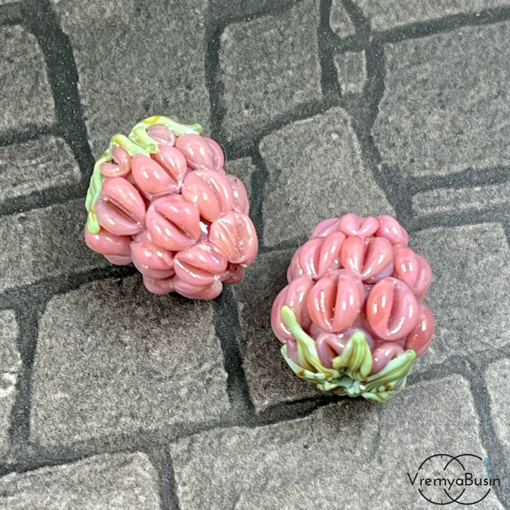 • Бусина ручной работы "Малинка", ок. 14 мм, лэмпворк из стекла (1 шт.)