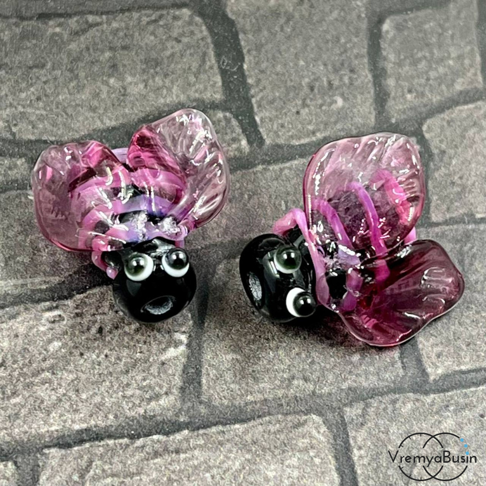 • Бусина ручной работы "Пчела", 14х16 мм, лэмпворк из стекла (1 шт.)