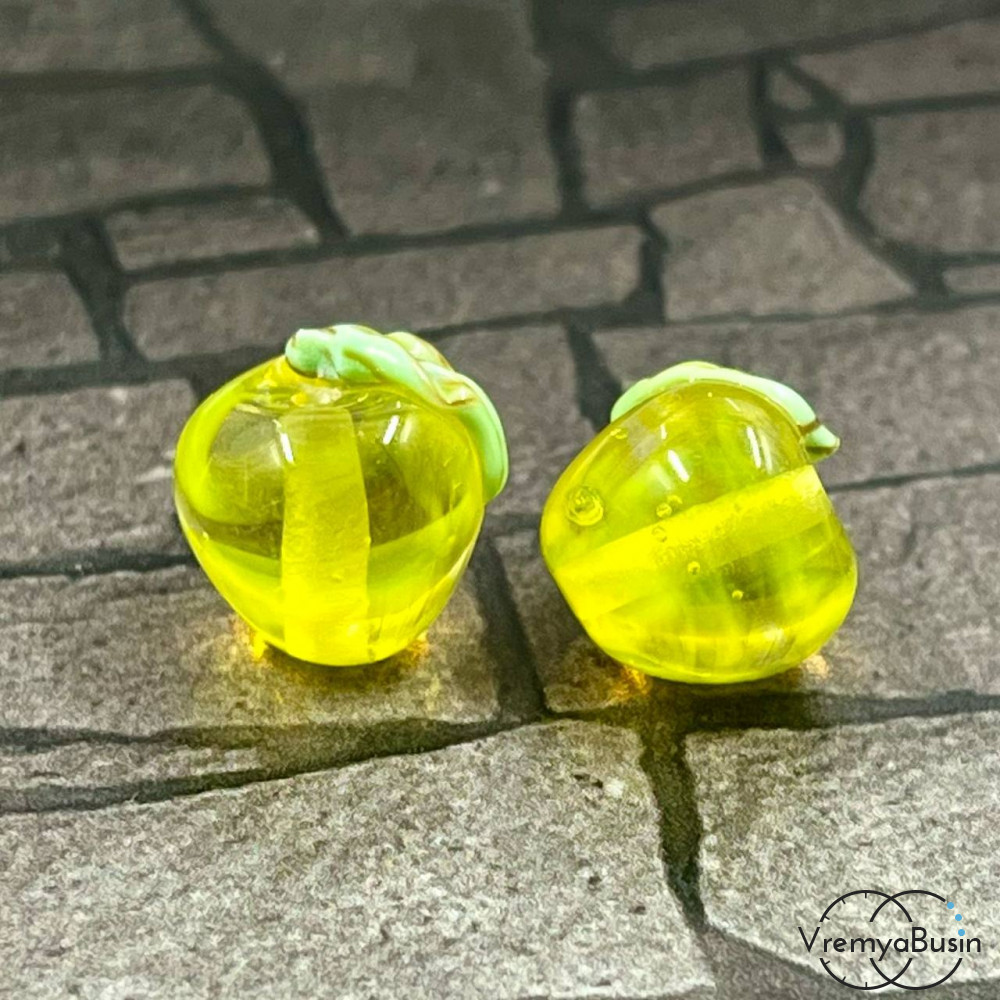 Бусина ручной работы "Яблочко", ок. 12 мм, лэмпворк из стекла (1 шт.)