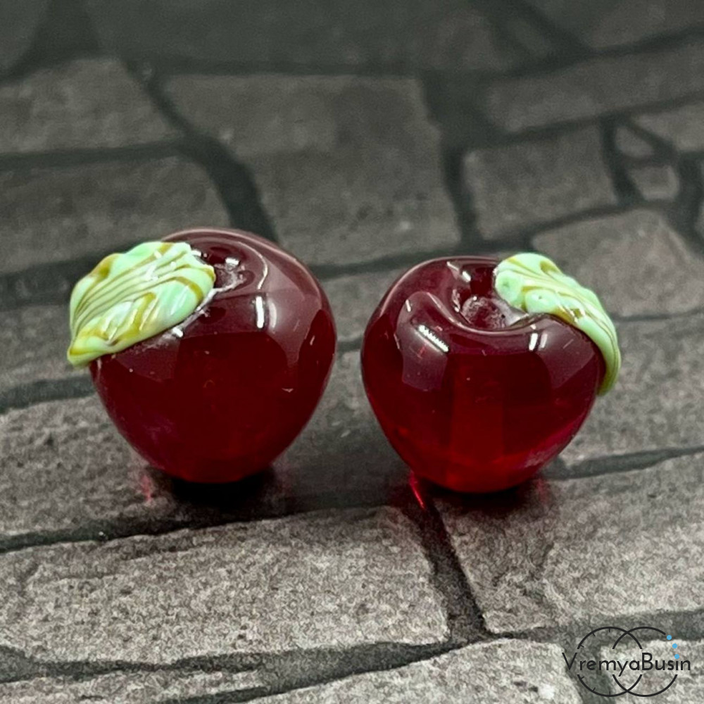 Бусина ручной работы "Яблочко", ок. 12 мм, лэмпворк из стекла (1 шт.)